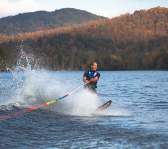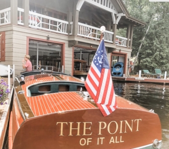 In the Spring and throughout summer, the flora and fauna come alive. A beautiful, lush landscape of cascading mountains, and pristine mountain streams and lakes form the perfect setting for a relaxing getaway. Days at The Point unfold with boating, waterskiing, canoeing, kayaking, paddle boarding, fishing, hiking, axe throwing, croquet and more. A Hackercraft tour of Upper Saranac Lake to view other great camps along with hearing their stories is a popular excursion. We are happy to assist with taking adventures beyond the Point and assist with arranging rock climbing, golfing at the nearby golf course, or hiking one of the nearby peaks.