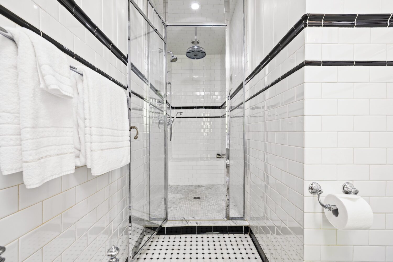 - Walk-in shower does not contain a shower seat
